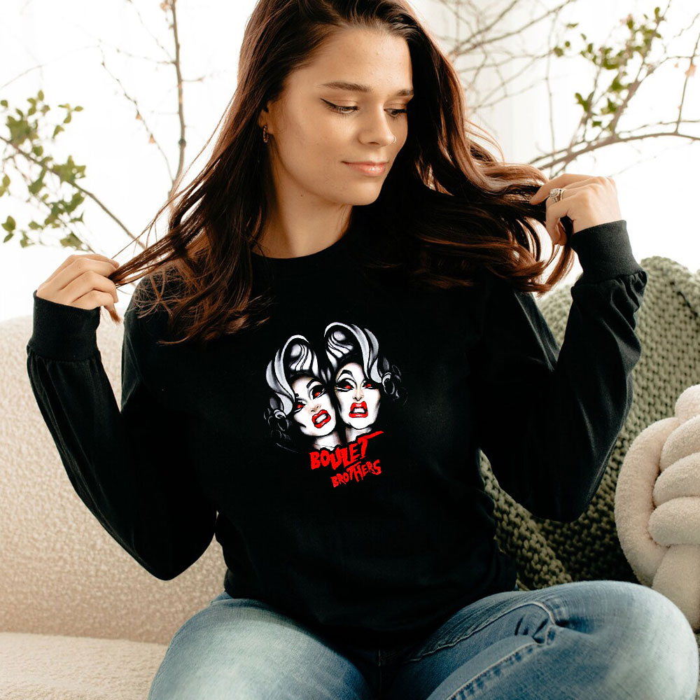 Drag Queen Merch Boulet Brothers Long Sleeve The long sleeve crewneck tee brings daily versatility to any wardrobe and awaits to be customized with your unique ideas. Made with 100% combed, ring-spun cotton for a highly comfortable wearing experience, each tee comes side-seamed and with shoulder taping that helps the garment stay like new for longer.