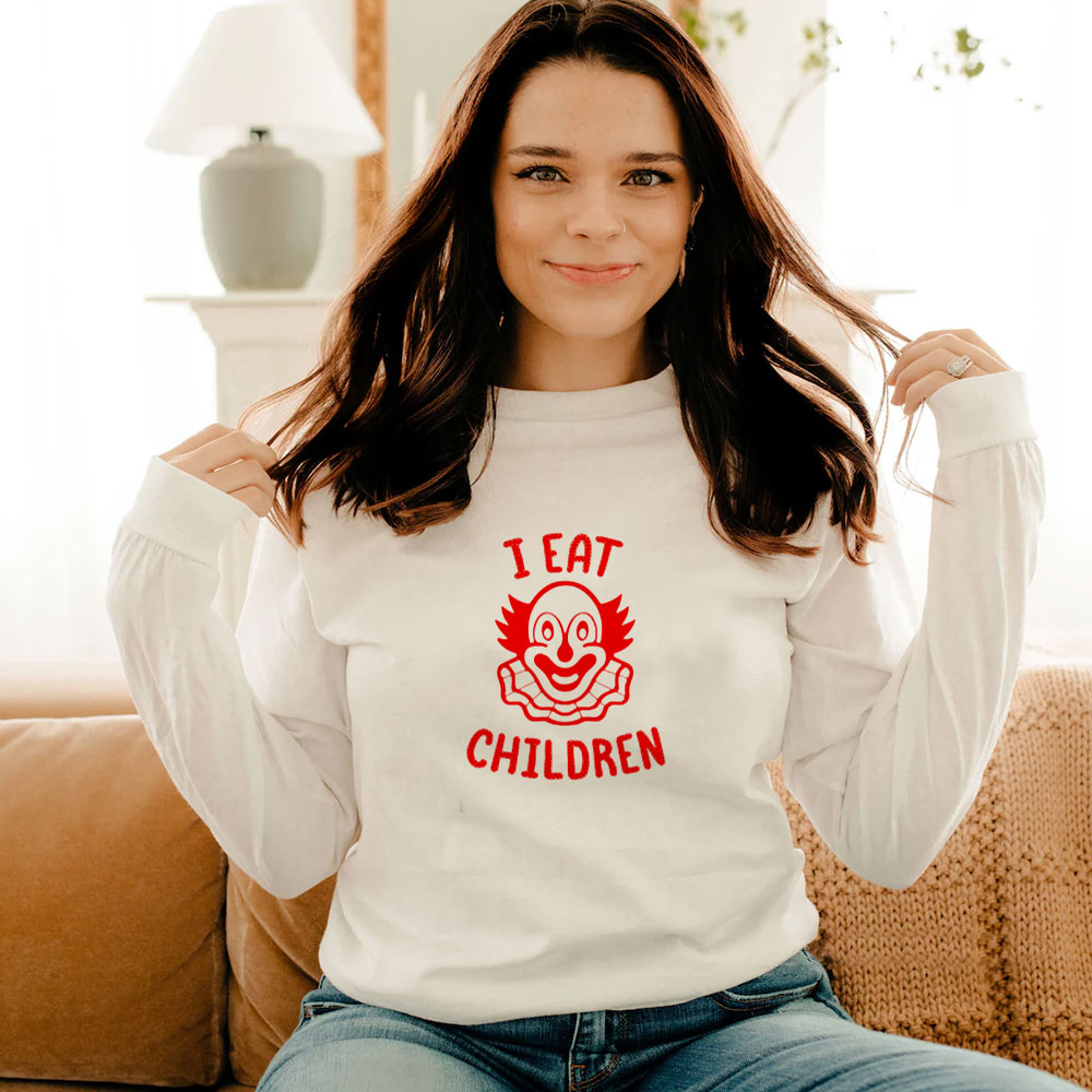 I Eat Children Evil Clown Creepy IT Scary Horror Long Sleeve – Outfithype.com