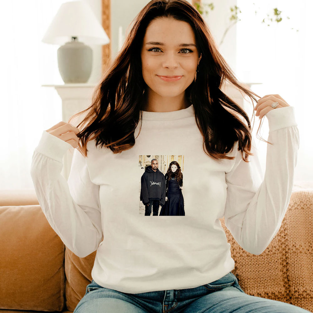 Kanye West And Lorde Photo Long Sleeve The long sleeve crewneck tee brings daily versatility to any wardrobe and awaits to be customized with your unique ideas. Made with 100% combed, ring-spun cotton for a highly comfortable wearing experience, each tee comes side-seamed and with shoulder taping that helps the garment stay like new for longer.