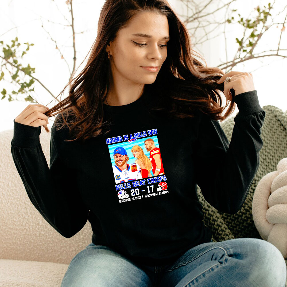 Karma Is A Bills Win Buffalo Bills Beat Kansas City Chiefs Long Sleeve The long sleeve crewneck tee brings daily versatility to any wardrobe and awaits to be customized with your unique ideas. Made with 100% combed, ring-spun cotton for a highly comfortable wearing experience, each tee comes side-seamed and with shoulder taping that helps the garment stay like new for longer.