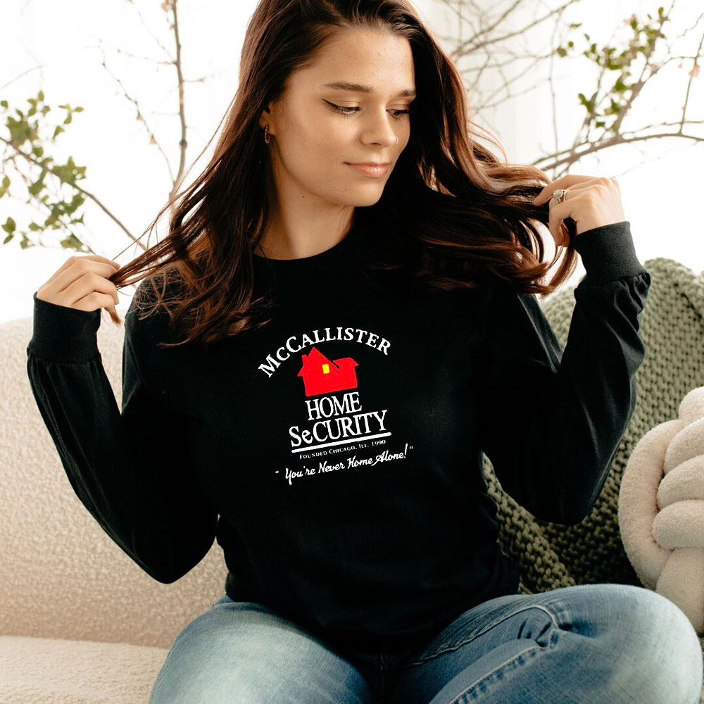 Kevin Mccallister Home Security Home Alone Long Sleeve The long sleeve crewneck tee brings daily versatility to any wardrobe and awaits to be customized with your unique ideas. Made with 100% combed, ring-spun cotton for a highly comfortable wearing experience, each tee comes side-seamed and with shoulder taping that helps the garment stay like new for longer.