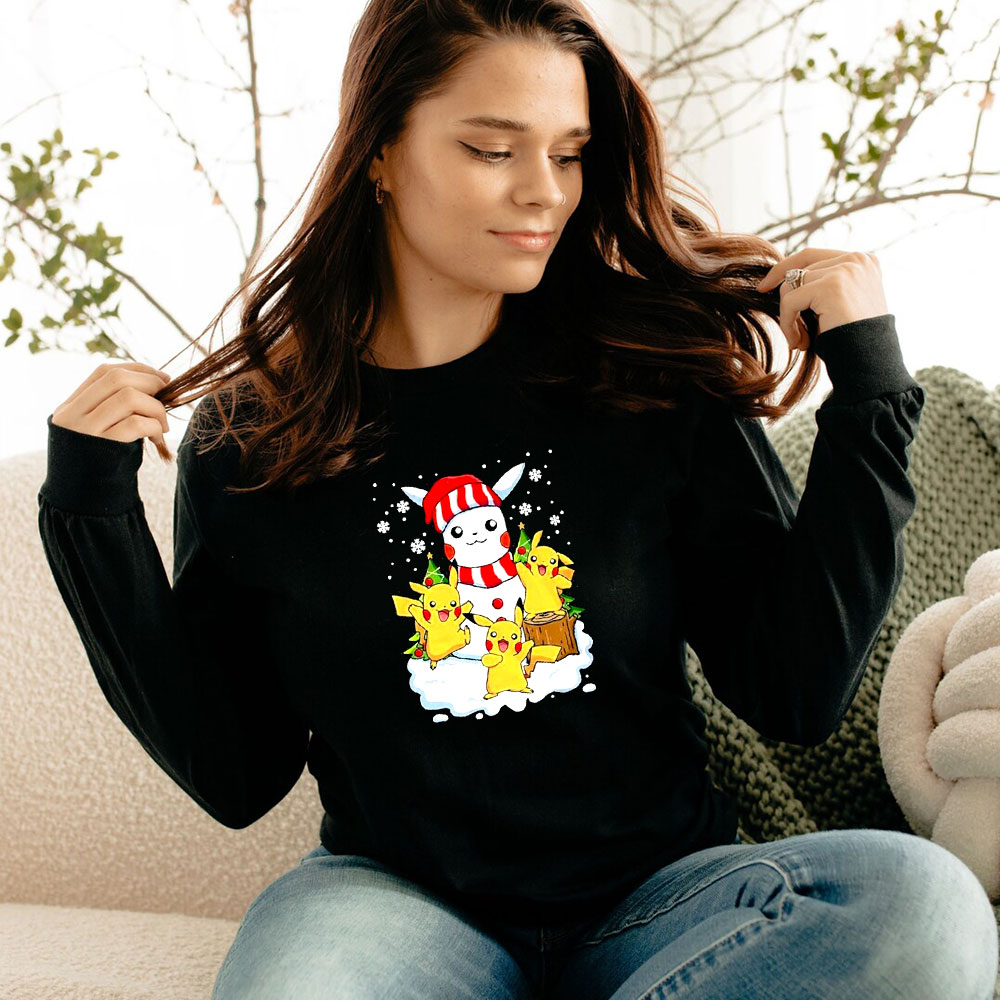 Merry Christmas Santa Pikachu Mashup Long Sleeve The long sleeve crewneck tee brings daily versatility to any wardrobe and awaits to be customized with your unique ideas. Made with 100% combed, ring-spun cotton for a highly comfortable wearing experience, each tee comes side-seamed and with shoulder taping that helps the garment stay like new for longer.