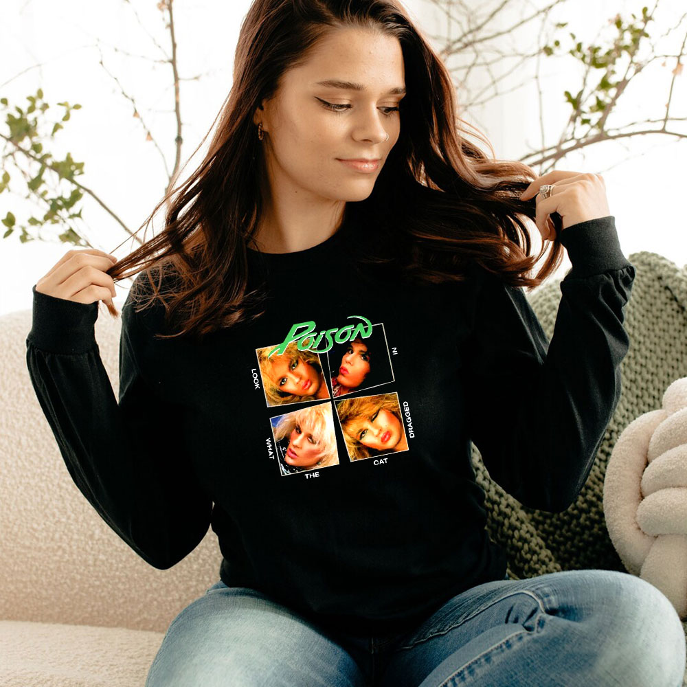 Poison Look What The Cat Dragged In Long Sleeve The long sleeve crewneck tee brings daily versatility to any wardrobe and awaits to be customized with your unique ideas. Made with 100% combed, ring-spun cotton for a highly comfortable wearing experience, each tee comes side-seamed and with shoulder taping that helps the garment stay like new for longer.