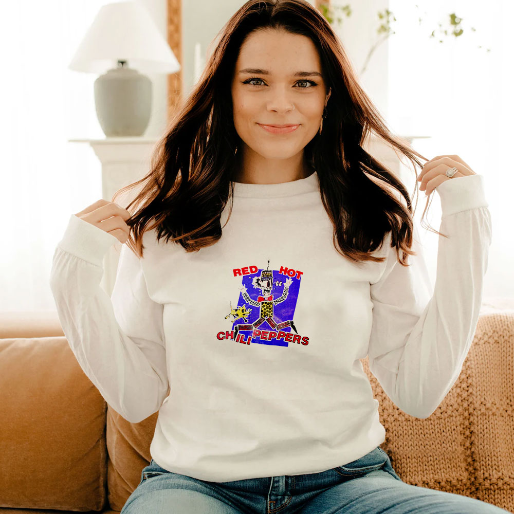 Red Hot Chili Peppers 1988 Turd Town Tour Long Sleeve The long sleeve crewneck tee brings daily versatility to any wardrobe and awaits to be customized with your unique ideas. Made with 100% combed, ring-spun cotton for a highly comfortable wearing experience, each tee comes side-seamed and with shoulder taping that helps the garment stay like new for longer.