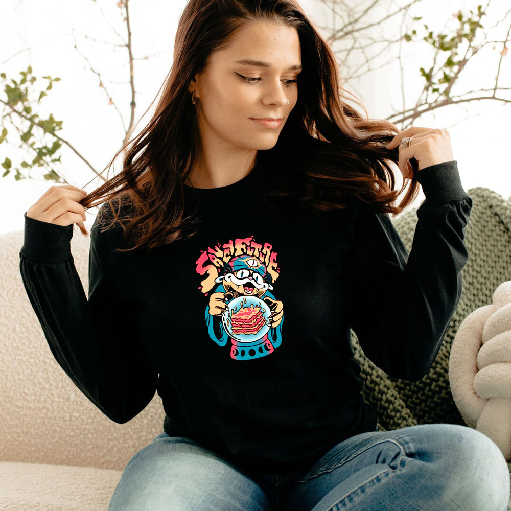 Saucy Future Garfield Long Sleeve The long sleeve crewneck tee brings daily versatility to any wardrobe and awaits to be customized with your unique ideas. Made with 100% combed, ring-spun cotton for a highly comfortable wearing experience, each tee comes side-seamed and with shoulder taping that helps the garment stay like new for longer.