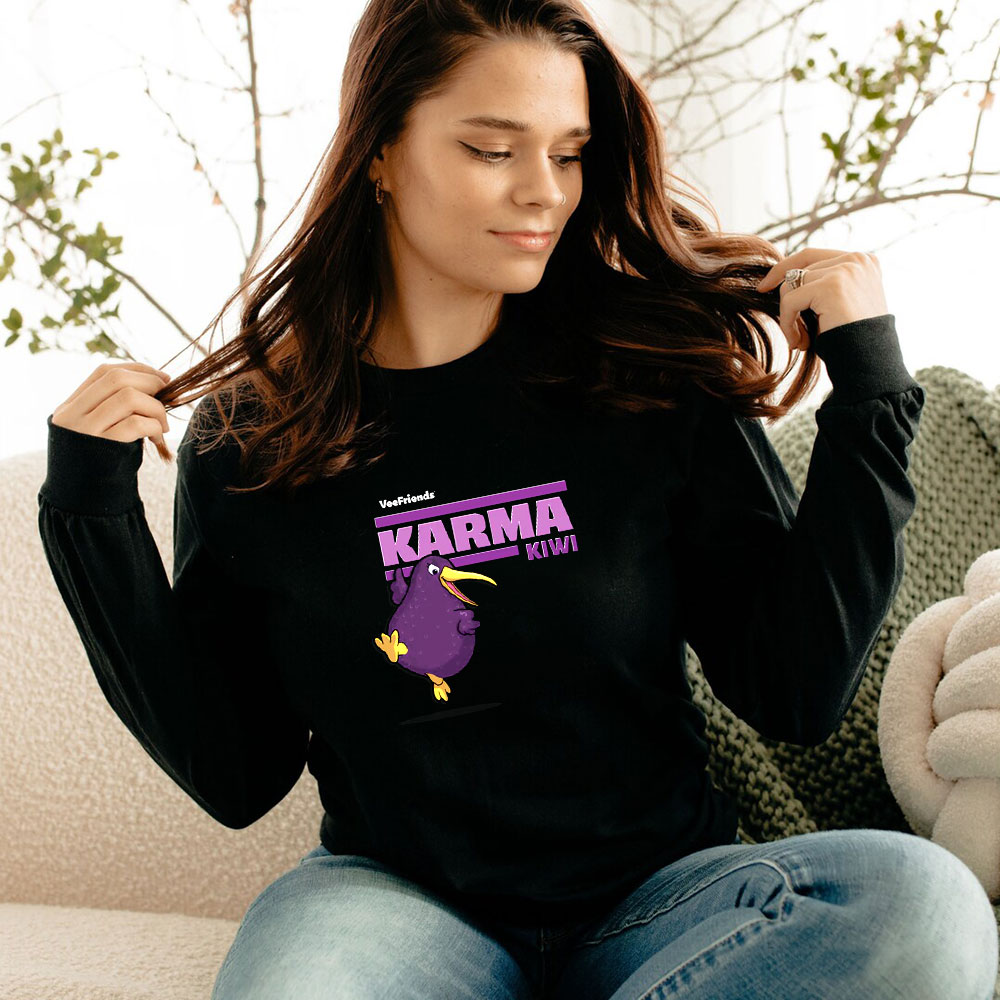 Veefriends Karma Kiwi Long Sleeve The long sleeve crewneck tee brings daily versatility to any wardrobe and awaits to be customized with your unique ideas. Made with 100% combed, ring-spun cotton for a highly comfortable wearing experience, each tee comes side-seamed and with shoulder taping that helps the garment stay like new for longer.
