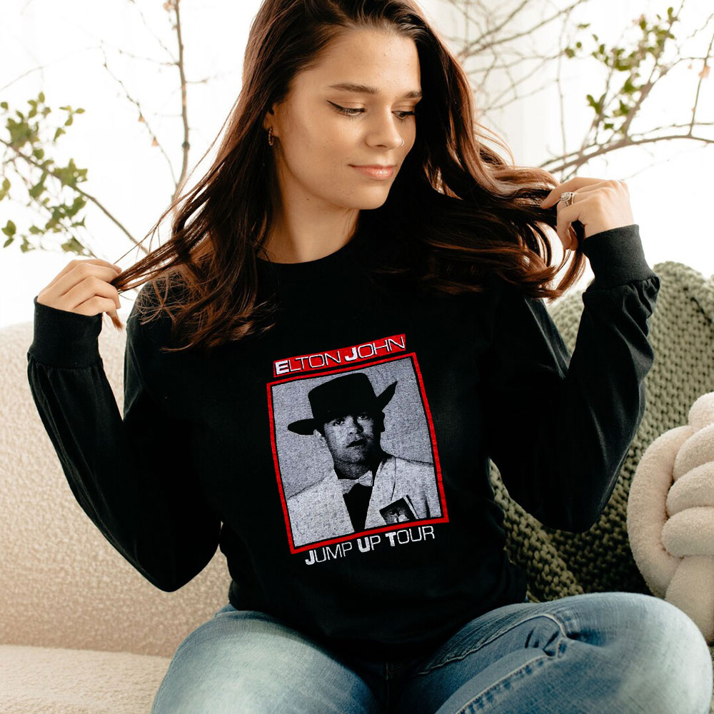 Vintage 1982 Elton John Jump Up Tour Long Sleeve The long sleeve crewneck tee brings daily versatility to any wardrobe and awaits to be customized with your unique ideas. Made with 100% combed, ring-spun cotton for a highly comfortable wearing experience, each tee comes side-seamed and with shoulder taping that helps the garment stay like new for longer.