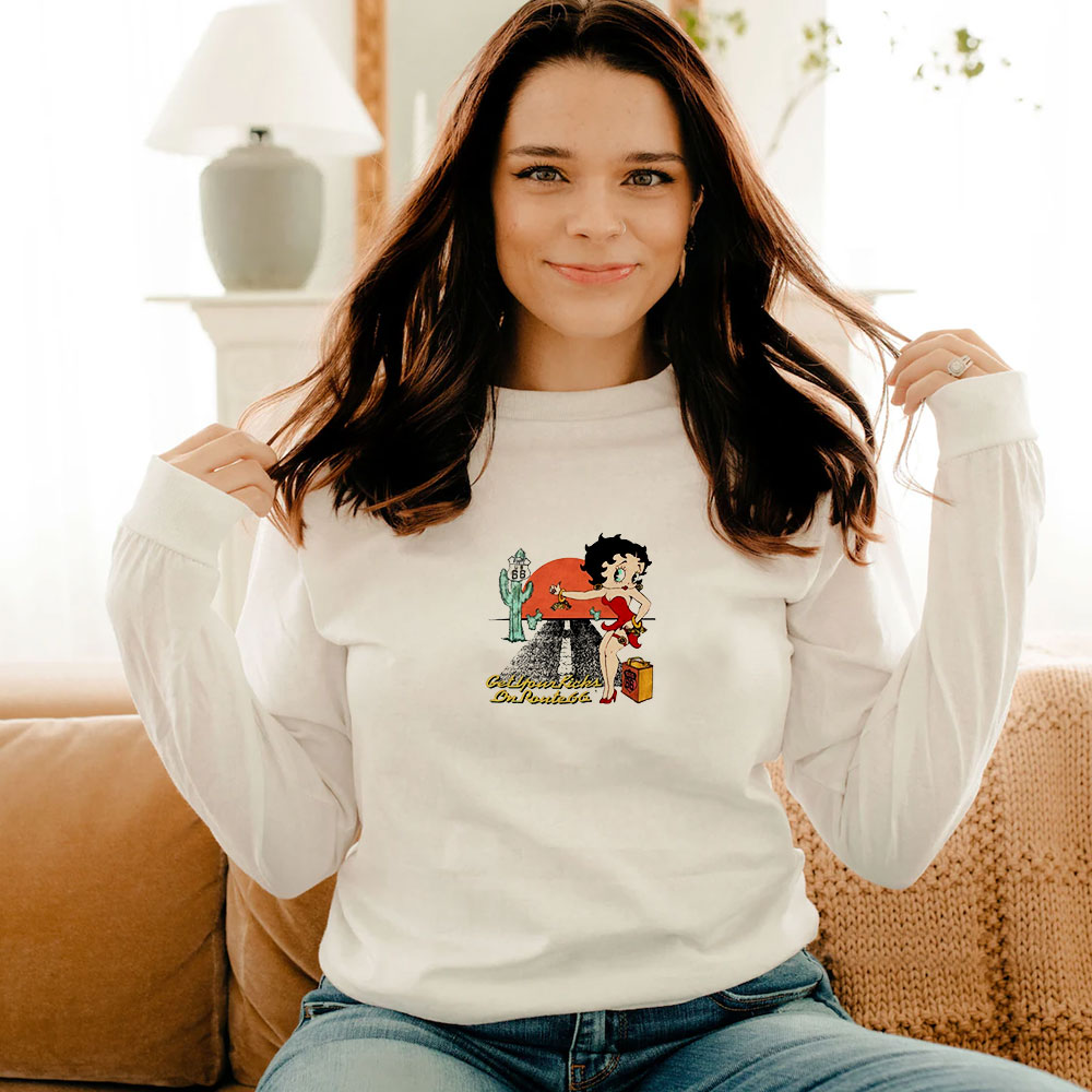 Vintage 1994 Betty Boop Cartoon Get Your Kicks On Route 66 Long Sleeve – Outfithype.com