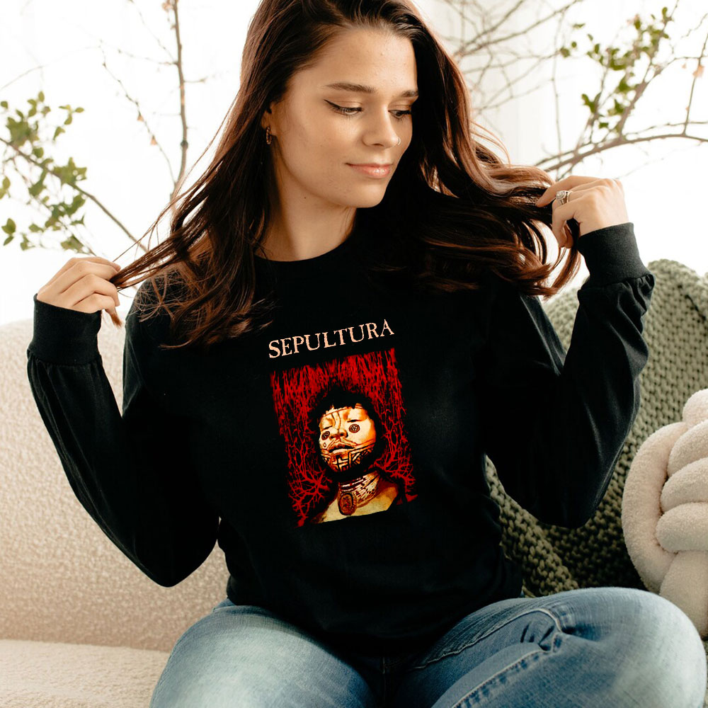 Vintage 1996 Sepultura Roots World Tour Long Sleeve The long sleeve crewneck tee brings daily versatility to any wardrobe and awaits to be customized with your unique ideas. Made with 100% combed, ring-spun cotton for a highly comfortable wearing experience, each tee comes side-seamed and with shoulder taping that helps the garment stay like new for longer.
