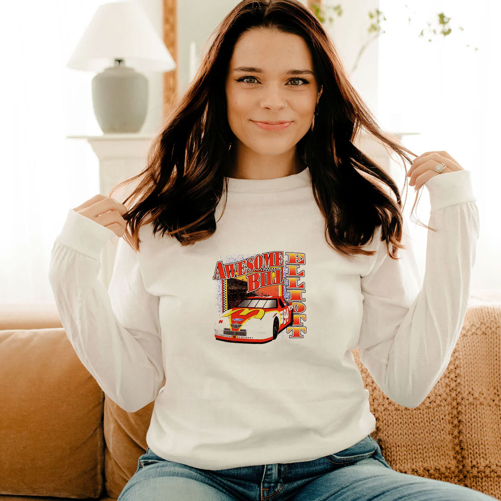 Vintage 90s Nascar Bill Elliott McDonalds Long Sleeve The long sleeve crewneck tee brings daily versatility to any wardrobe and awaits to be customized with your unique ideas. Made with 100% combed, ring-spun cotton for a highly comfortable wearing experience, each tee comes side-seamed and with shoulder taping that helps the garment stay like new for longer.