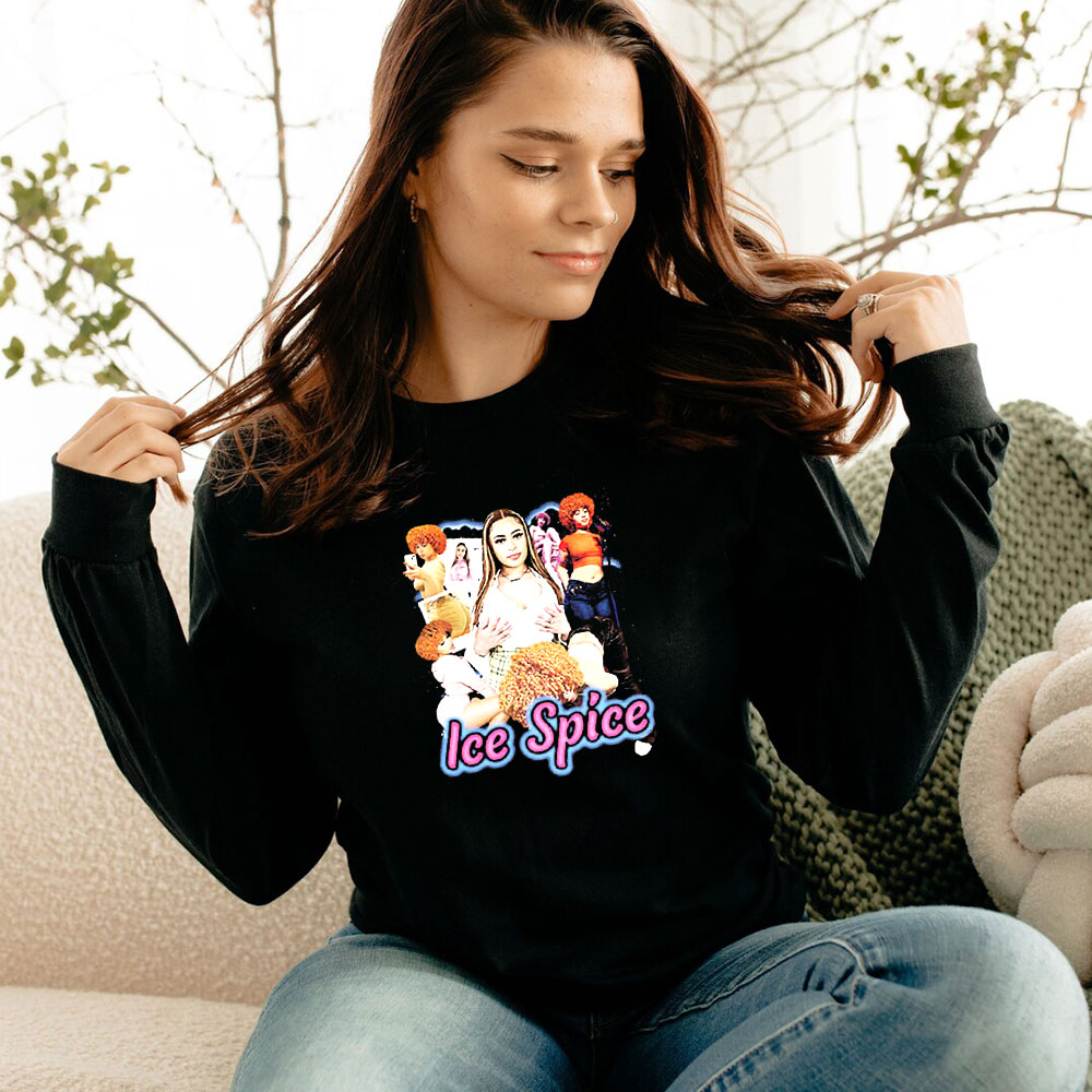 Vintage Ice Spice Bootleg Merch Long Sleeve The long sleeve crewneck tee brings daily versatility to any wardrobe and awaits to be customized with your unique ideas. Made with 100% combed, ring-spun cotton for a highly comfortable wearing experience, each tee comes side-seamed and with shoulder taping that helps the garment stay like new for longer.
